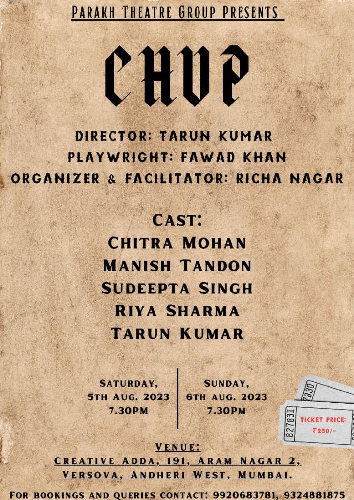 To watch a recording of the performance of Chup on Aug 6, 2023 at Creative Adda in Bombay, click here.